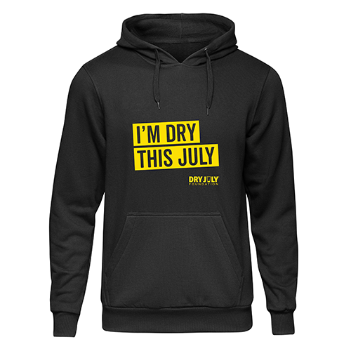 Every hoodie sold contributes to Dry July Foundation initiatives. Limited stock – grab yours while they last!
